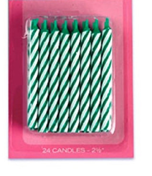 2.5" Green Color Striped Birthday Candle, 1 pack of 24 candles