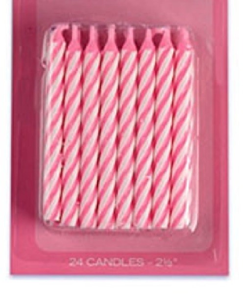 2.5" Pink Color Striped Birthday Candle, 1 pack of 24 candles