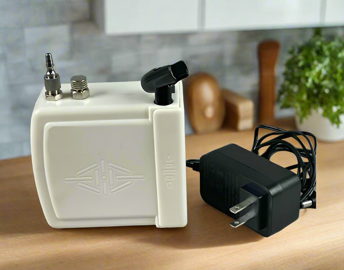 An airbrush system is an essential tool in a bakery for decorating cakes, cookies, and pastries with food-safe coloring. The compressor supplies a steady stream of pressurized air to the airbrush gun, allowing for smooth and even application of liquid food coloring.