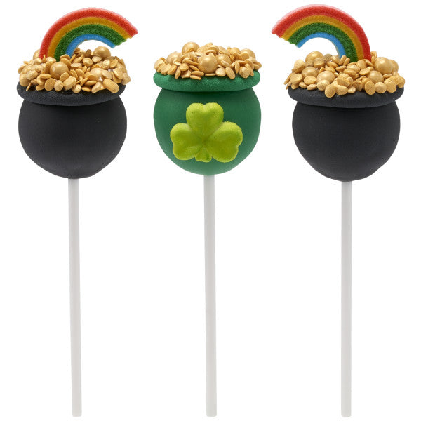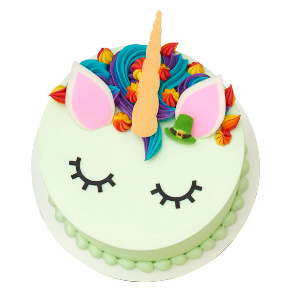 Create a cake worthy of St. Patrick himself with these decorations. Assortment includes green leprechaun hats, gold horseshoes, and green clovers. Made of finely granulated sugar molded into shapes and painted with edible food color.Dimensions: 0.95 x 1.05 x 0.3 inches