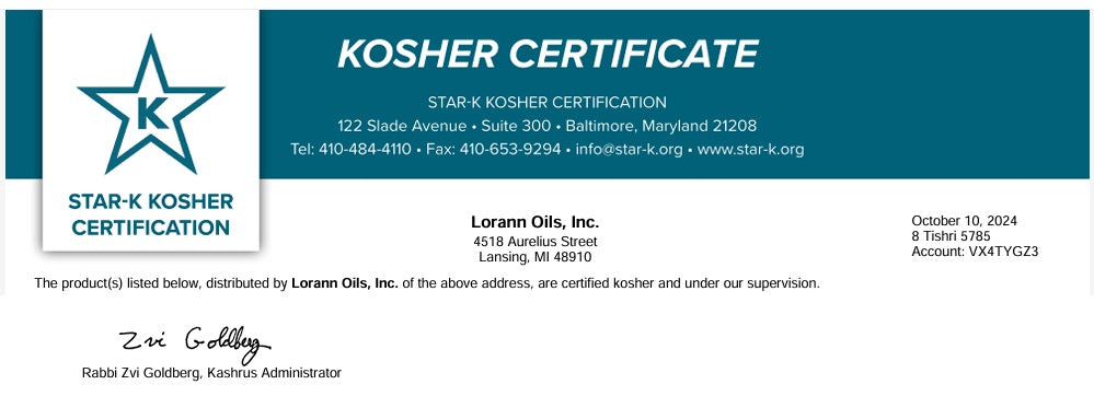 - Kosher - Star-K Kosher Certification, Baltimore, MD. Pareve.