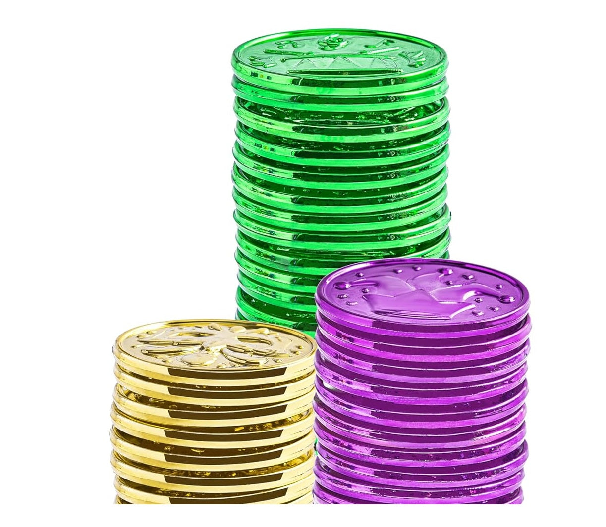 Mardi Gras Coins - Assorted Colors, 1-1/2"
