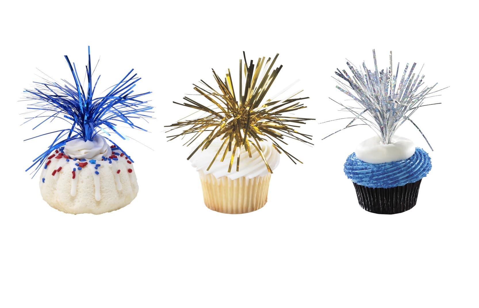 12-Pack Patriotic Star Cupcake Picks ? Featuring vibrant red, white, and blue stripes, these picks bring a burst of color and spirit to any cake or dessert.