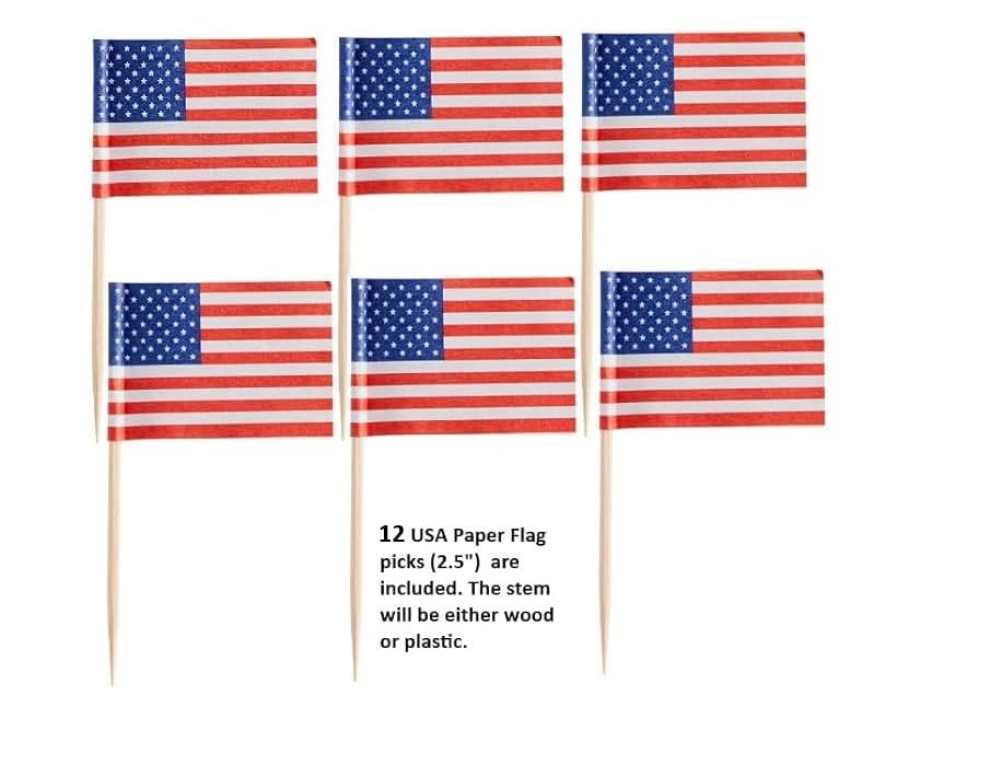 12 USA! Food Flag Picks ? Show your American pride with mini flags that are perfect for cupcakes, appetizers, or party trays.