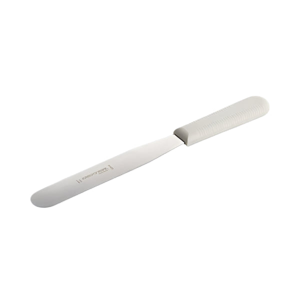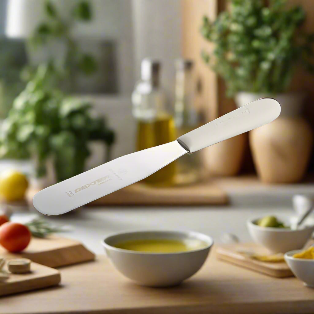 Effortlessly spread the frosting with the Dexter-Russell Sani-Safe baking and icing spatulas. Designed for precision, its flexible, thin blade smoothly scrapes mixing bowls and evenly spreads frosting over delicate cakes. It easily slides under cake layers and moves fragile decorations without damage. When flexed, the blade conforms to the bowl’s shape for efficient frosting removal and returns to its straight form every time, thanks to professional heat treatment.