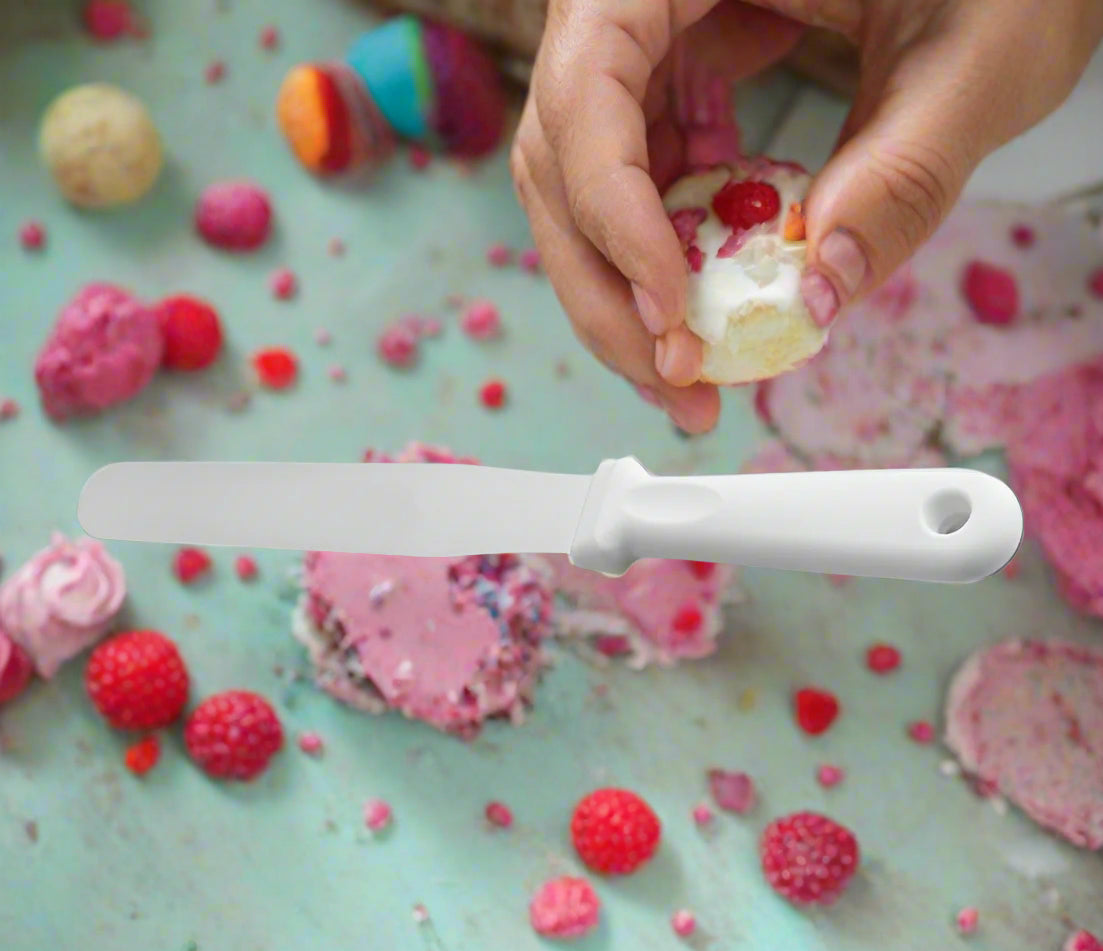 Our Straight Blade, stainless-steel white-handled spatula is a must-have for any kitchen, perfect for bakers and chefs alike. This versatile tool ensures smooth, professional results every time. Ideal for bakeries, cake shops, and home kitchens, it combines functionality with a sleek design that complements any workspace.