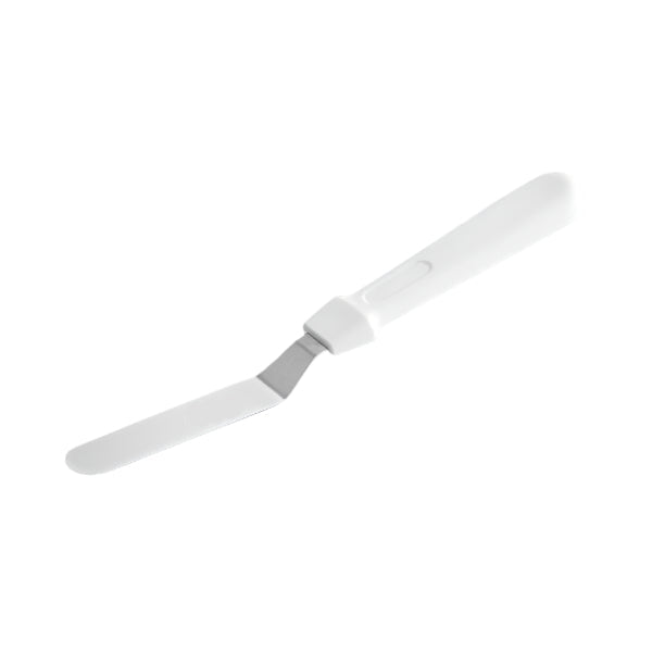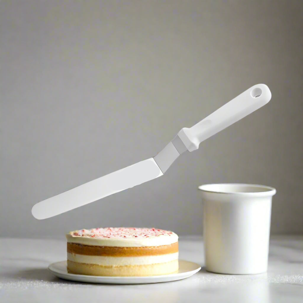 Our offset blade stainless-steel white-handled spatula is a must-have for any kitchen and is perfect for bakers and chefs alike. This versatile tool ensures smooth, professional results every time. Ideal for bakeries, cake shops, and home kitchens, it combines functionality with a sleek design that complements any workspace.